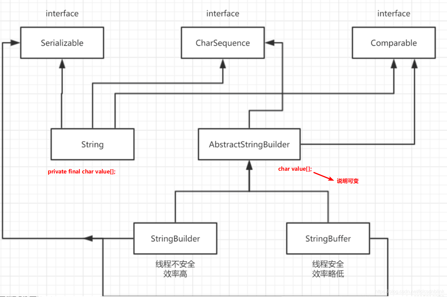 支持和StringBuilder所有相同的操作,不同的是StringBuffer是线程安全的,在声明的方法中使用synchronized关键字进行修饰,因此单线程中一般要比StringBuilder效率低